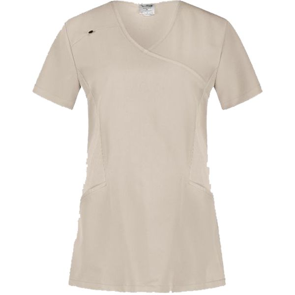 Работна медицинска туника JUSTINA е нов модел, елегантна, дамска туника на марката B-well с модерен и стилен дизайн, втален силует и ефирна материя. Изработена е от 72% полиестер, 21% вискоза и 7% еластан с плътност на плата 200гр/м², което я превръща в идеалното медицинско облекло.