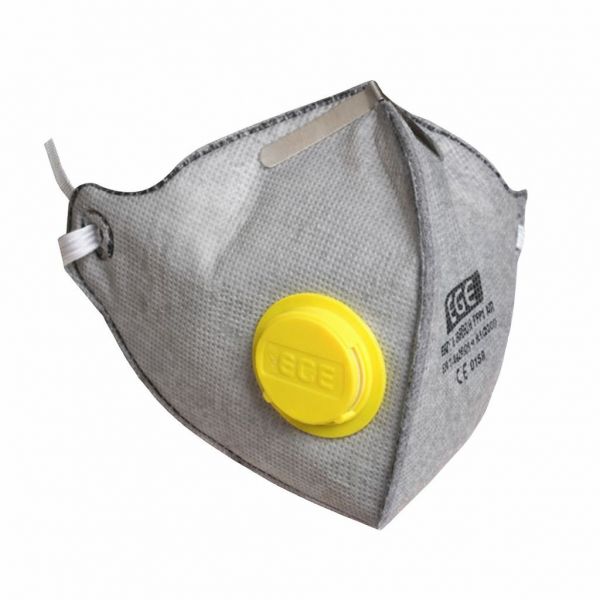Вертикално сгъваем респиратор с клапа, с активен въглен, за дихателна защита срещу аерозолни частици, фин прах, дим, мъгла.