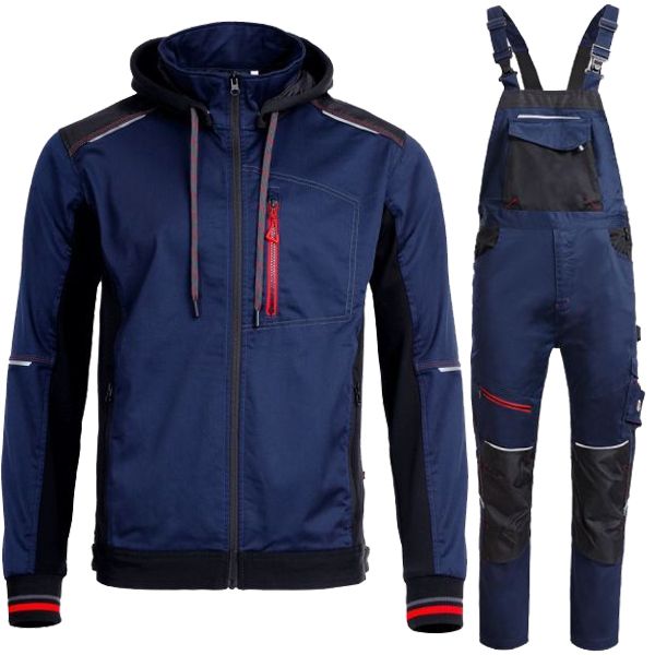 Работен комплект Kastor Stretch яке и полугащеризон тъмносин/червен