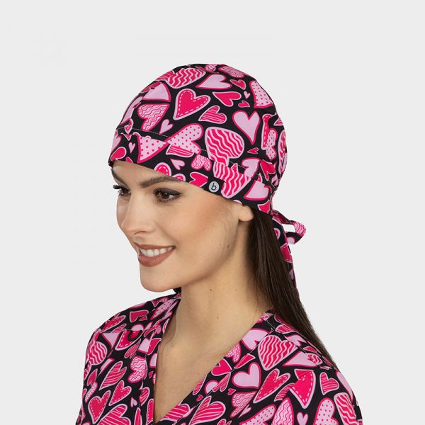 Медицинска шапка MODENA принт Pink Hearts