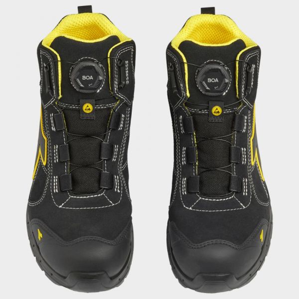 • Средновисоки защитни обувки с BOA® Fit System за бързо и прецизно регулиране, създадени за комфорт, стабилност и ESD защита.