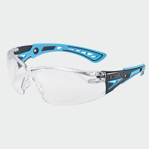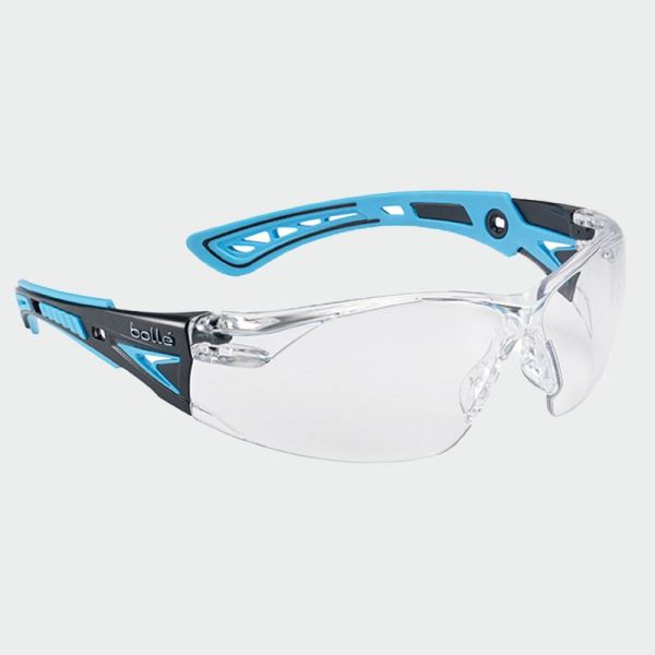 РАБОТНИ Предпазни очила RUSH PLUS са панорамни и олекотени очила на марката Bolle, имат ултра спортен дизайн с ергономичен материал от два слоя и оцветени вътрешни рамки.