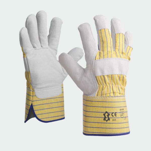 • Работни ръкавици, изработени от лицева телешка кожа и плат, предназначени за обща ръчна работа в строителството, логистиката и индустрията. Комбинират издръжливост и комфорт при работа.