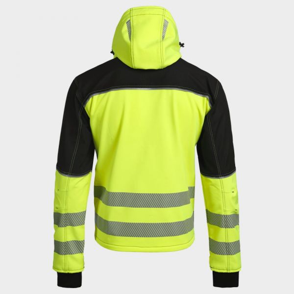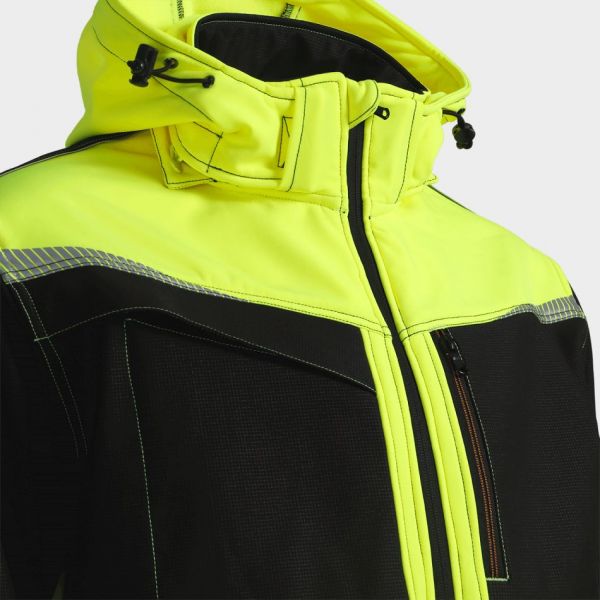• Сигнално работно софтшел яке с водоотблъскваща повърхност и мека поларена подплата за комфорт и защита при лоши атмосферни условия.